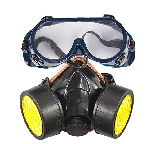 YEHAM Industrial Chemical Gas Anti-Dust Dual Cartridge Filter Respirator Mask Goggles Set