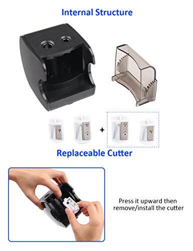 【REPLACEABLE SHARPENER CORE DESIGN】The cutter inside is replaceable. Extra two replacement cutters included. Extend the longer lifespan of pencil sharpener. it is easy and quick changed not need buy again.