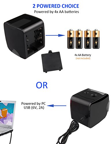 【USB & BATTERY POWERED 】The Electric Pencil Sharpener can be powered either a standard USB outlet or 4 AA batteries (batteries not included), this means you don't need worry about finding a place to plug it in, can use it anywhere you need.