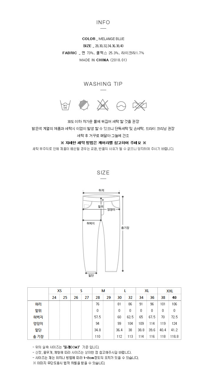 | 사이즈 | 28,30,32,34,36,38,40 |