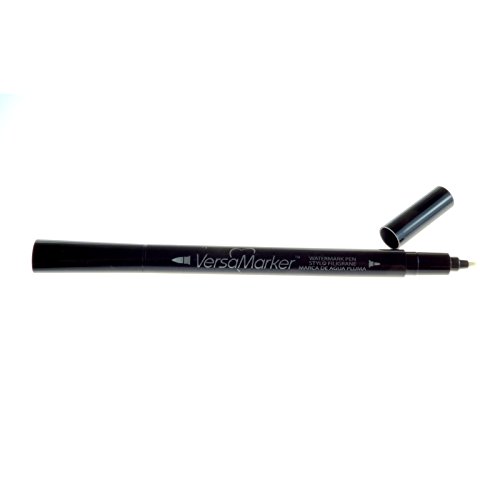 Tsukineko's dual-ended versamarker pen is the ideal tool for watermark and tone-on-tone stamping; a clear ink that is tacky to the touch for embossing, chalking and pearlescent powder applications