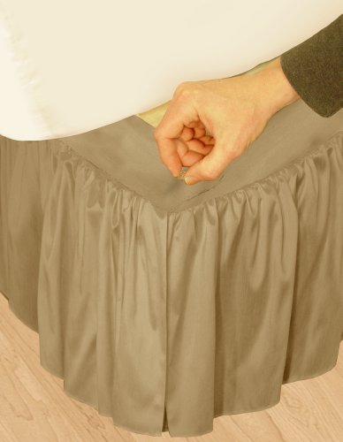 Veratex The "Hike Up Your Skirt" Collection Adjustable Solid Pattern Faux Silk Fabric Ruffle Bed Skirt Set, California King Size, Taupe