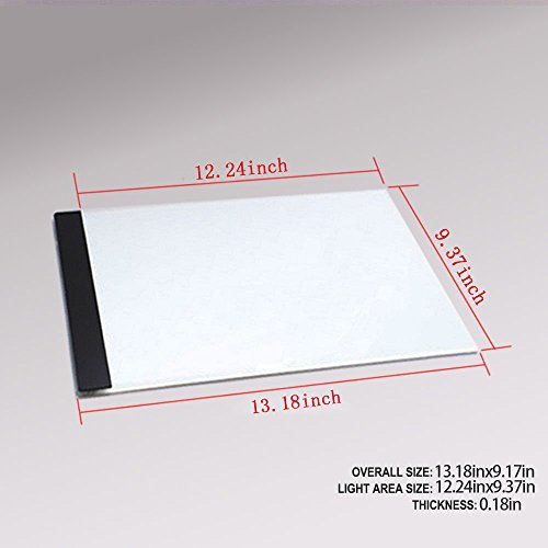 - Simple operation: The Light Pad doesn't need to install any software, you just need to insert the plug we enclosed, turn it on then you can start your creative work. Specifications