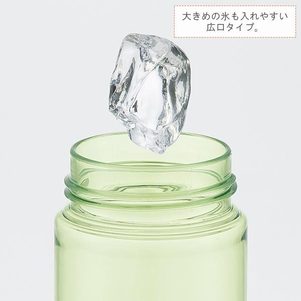 分解可能で氷や飲み物が入れやすいクリアボトル。液体だけが飲めるこし器付きの飲み口なのでフレーバーウォーターなどにオススメです。
