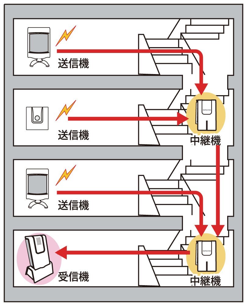 ● When radio waves are difficult to reach such as wide places or between upper and lower stories of buildings