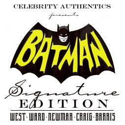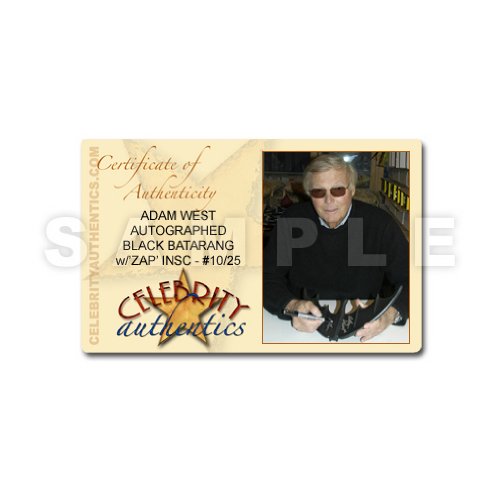 Includes Celebrity Authentics Certificate of Authenticity featuring a picture of Adam signing batarang.