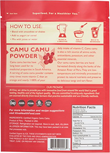 Kiva Organic Camu Camu Powder - Vitamin C, Antioxidants, Non-GMO, Raw, Vegan, 3.5-Ounce Bag