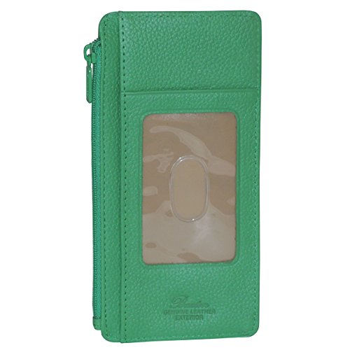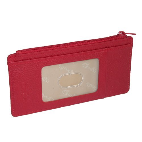 -. Feature : Naturally Milled Buttersoft Leather / Snap strip that secures 6 credit card slots / Large outside slip pocket and I.D. Window / Full top-zip for additional security / Removable credit card holder with ID window inside zipper compartment
