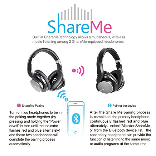 Mixcder ShareMe 5 Bluetooth V4.1+EDR Over-ear Headphones Wireless Advanced Stereo Foldable Headsets with Mic - Black