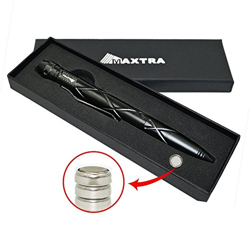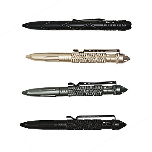 Maxtra Multi-functional Defender Tactical Pen Aircraft Aluminum w/Carbide Crown Tip Glass Breaker Self Defense LED Flashlight Emergency Tool, Black