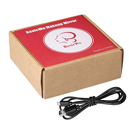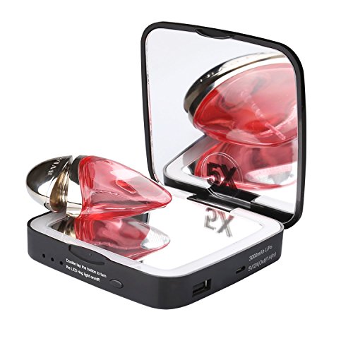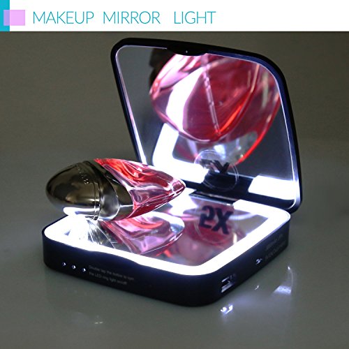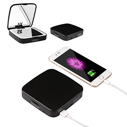 BASICWU LED LIGHTED COMPACT MAKEUP MIRROR WITH POWERBANK -- 5X MAGNIFICATION MULTI-PURPOSE COSMETIC MIRROR BUILT-IN BATTERY, PORTABLE POWERBANK 3000MAH 2-IN-1