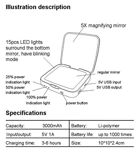 • Bright LED light surrounded allow you makeup in the dark
