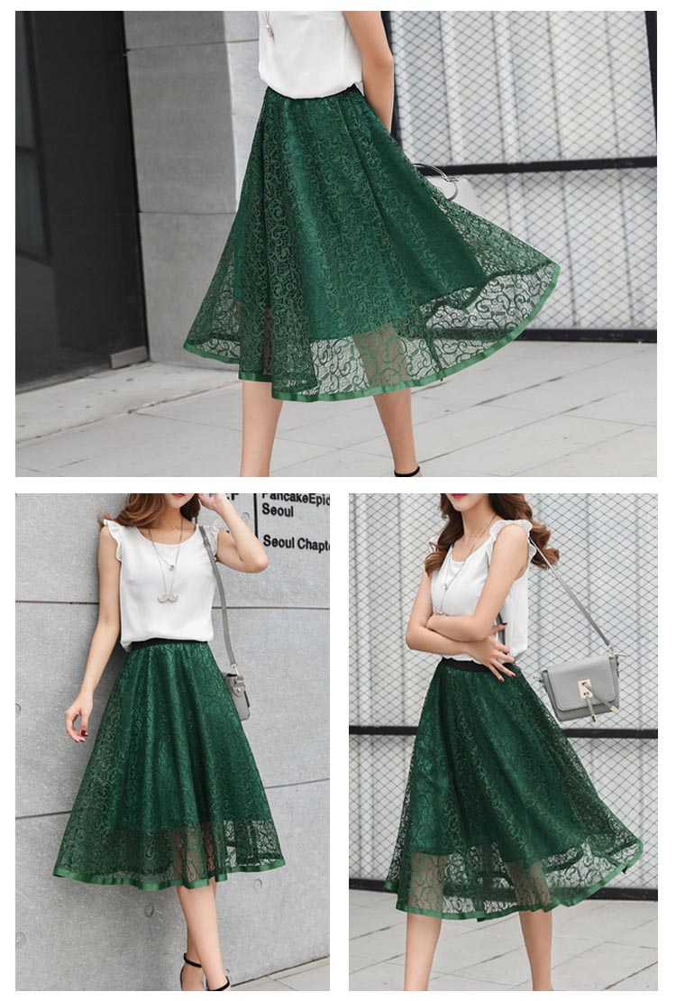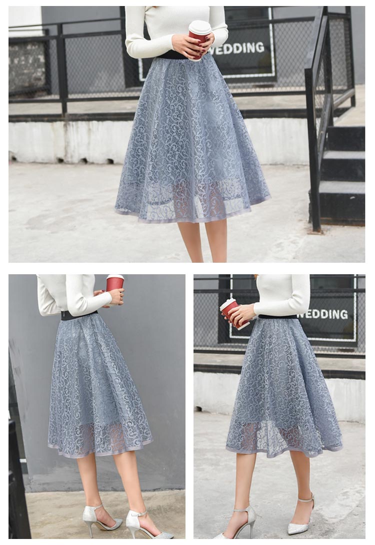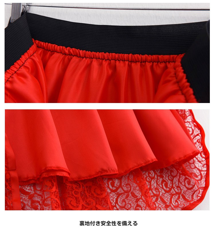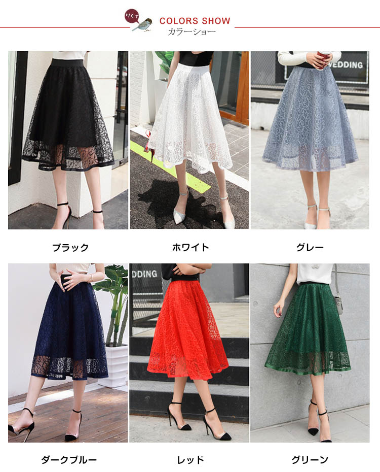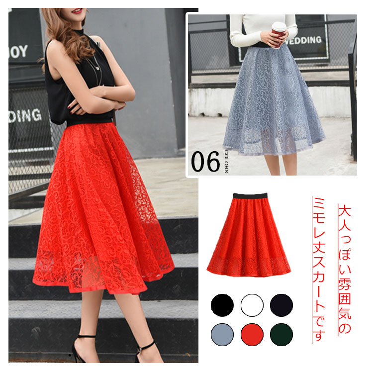 | 大人っぽい雰囲気のミモレ丈スカートですウエストゴムで楽に穿けますレースが華やかさを演出し、オケージョンシーンでも活躍しますこれからの季節におすすめです | |