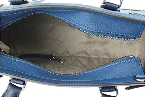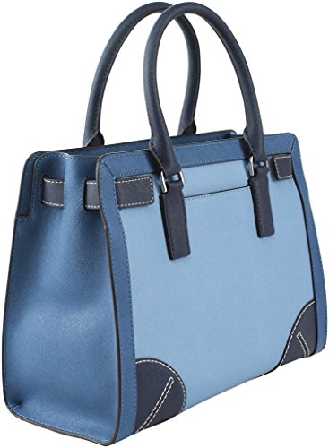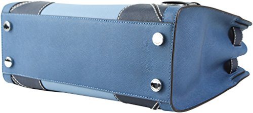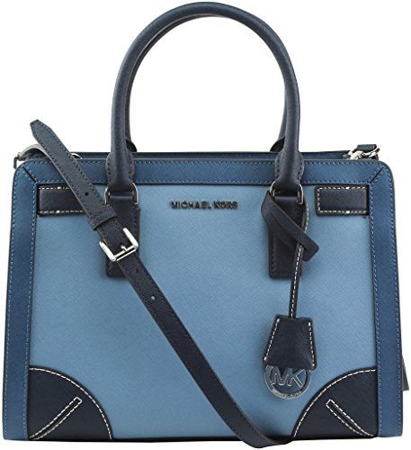 -. Brand : -. Color : Navy blue -. Department : womens -. EAN : 0889154879416 -. Feature : colorblocked saffiano leather / top zip closure / polyester lining / 3 open compartments / approx. 10 x 7.5 x 4"; 4.5" handle drop; 19.5" strap drop -. ProductGroup : Shoes -. ProductTypeName : HANDBAG -. Size : NAVY -. Title : Corner Frame Dillon Top Zip East West Satchel Pale Blue/Steel Blue/Navy -. UPC : 889154879416