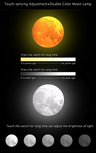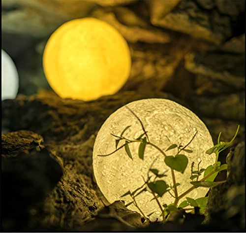 MQ Rechargeable 3D Printing Moon Lamp 2-Color Change Charging Touch Switch Bedroom Night Light Halloween Christmas Gifts for Children (3.54", Beige+White)