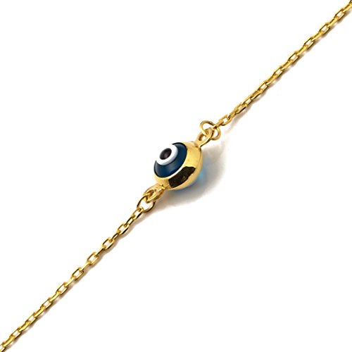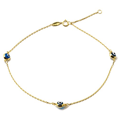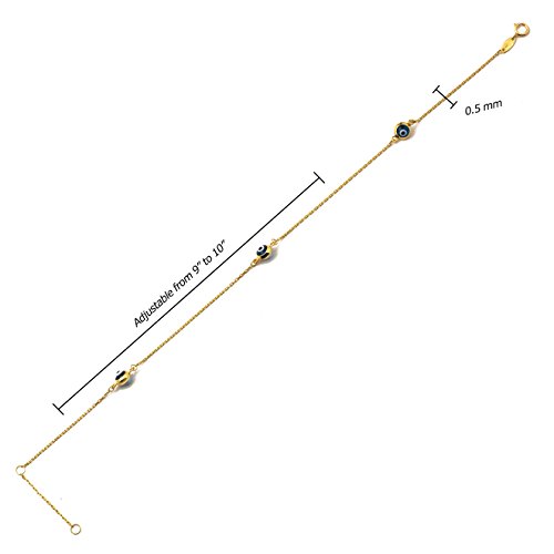 -. Title : LoveBling 10K Yellow Gold .5mm Rolo Chain with Evil Eye Charms Anklet Adjustable 9" to 10" (#45)