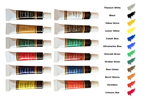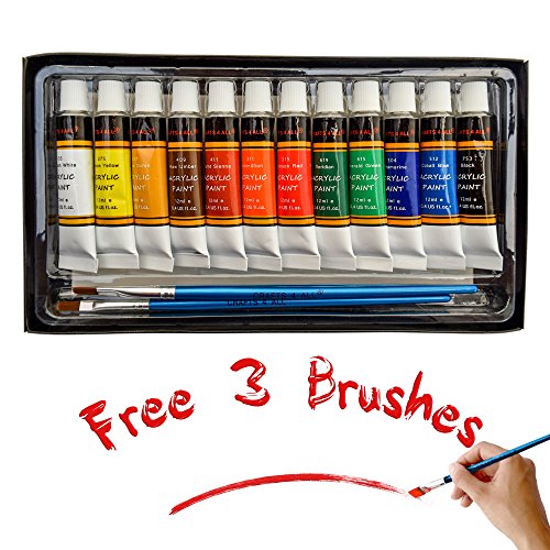 Acrylic paint 12 Set by Crafts 4 All For Paper,canvas,wood,ceramic,fabric & crafts.Non toxic & Vibrant colors. Rich Pigments With Lasting Quality - For Beginners, Students