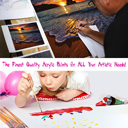 ULTIMATE ART KIT & PERFECT GIFT - Adults and kids love the versatility of our acrylics. From canvas art, painting, scrap booking and even nails, you will NEVER need another paint set to pursue your passion! They are suitable for most paintable surfaces including Stretched Canvas, Wood,Glass,card decorating,plastic,Craft Foam,Ceramic,Decorative Wallpaper, Terracotta, Blackboard easel,Paper,Art Chalk Board And More.