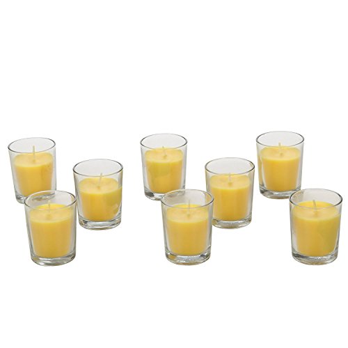 Hosley  Premium, Highly Scented Set of 8, Citronella, Rosemary, Sage, Lemon Grass blend, Essential Oils, Votive Candles in Clear Glass. Burns upto 12 hours each. Great Gift for Home, Patio, Gardens