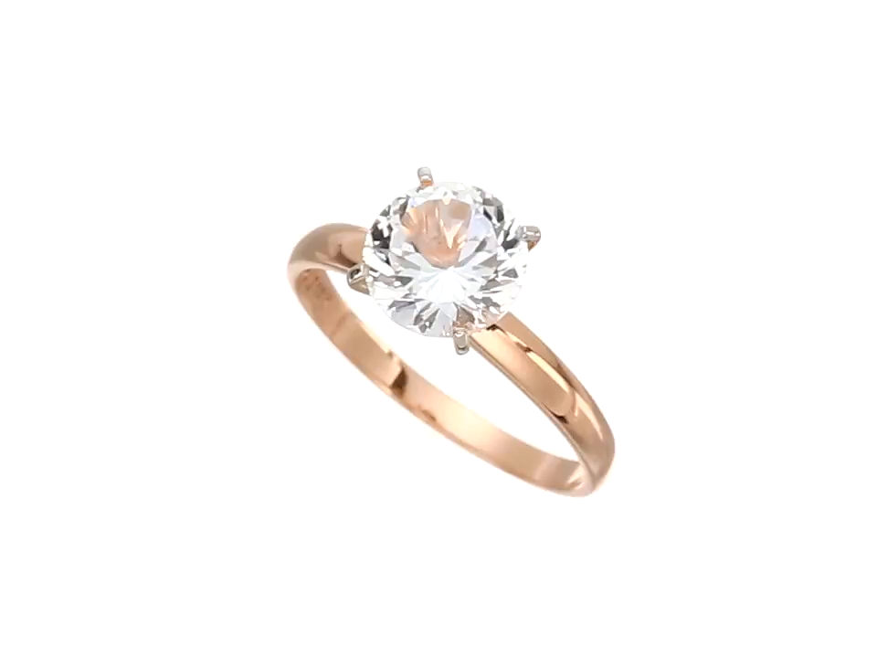 10k Rose Gold Round Created White Sapphire 100 Facet Solitary Ring, Size 7