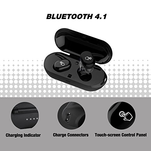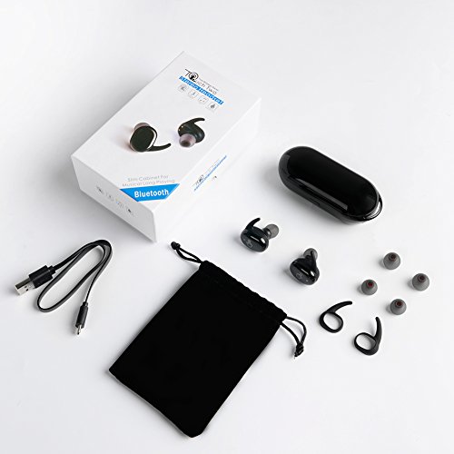 -. Feature : • Bluetooth 4.1 Version: True wireless earbuds are multi-point connection, two phones can pair at the same time. With advanced Bluetooth 4.1 technology, it provides the wider and larger bluetooth connection range(up to 33ft), achieving the stable connectivity in different occasions. Also paired well automatically when reconnect to earbuds. / • HD Stereo Sound: Built in high-quality sound chip, it provides the clear high & low volume. Two pieces interconnection, creates the special stereo audio and superb bass surrounding sound, enjoying the true wireless music. / • Ergonomic Design: It optimized for extra comfort and fits better in ear, Ease the problem of popping out,very soft material to protect ears. Make your phone call and music time more comfortable.Sweat proof construction is perfect for sports,running, jogging and gym exercise,watching TV,or sleep. / • Convenient Charging Box: 500mAh capacity charging box, with a 1 hour charge, you can charge your earbuds 6 times without cables. Combine the battery bank and storage box into a whole, easy to collect and charge for earbuds. / • After-sales Guarantee: Our Products have 12 moths Replacement Warranty and Satisfaction Guarantee. Factory warranty will only be valid when purchased from Yesker.