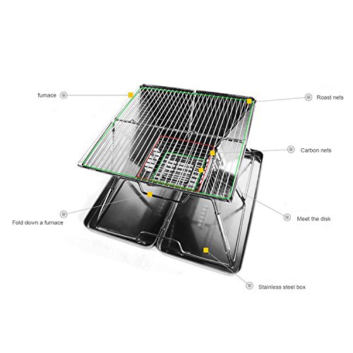 - Easy to use folding grill set. Folds down for convenient storage and portability.