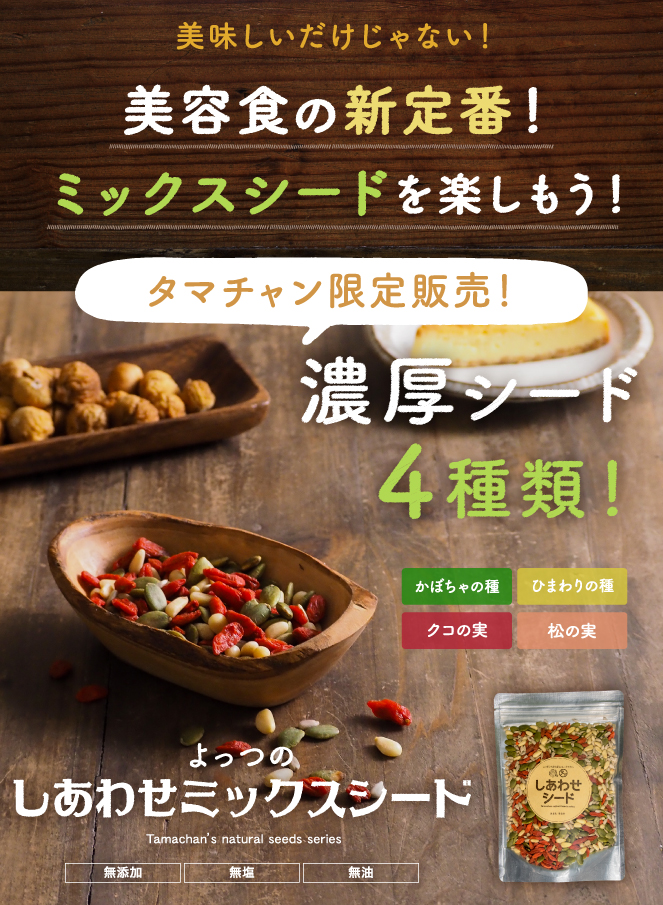 | 商品名 | 4種類ミックスシード (しあわせミックスシード) | 内容量 | 250g ジッパー式 |