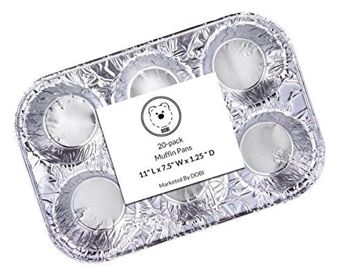 DOBI Muffin Pans - Disposable Aluminum Foil 6-Cup Cupcake Pans, Standard Size, Pack of 20. Favorite Muffin Tin Size for Baking Cupcakes, Muffins and Mini Pies