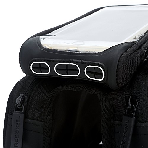 Two main pockets on both sides and one phone bag on the top, which is useful for your items storage.The top cell phone pouch is true of touch screen, you can also use your phone when cycling