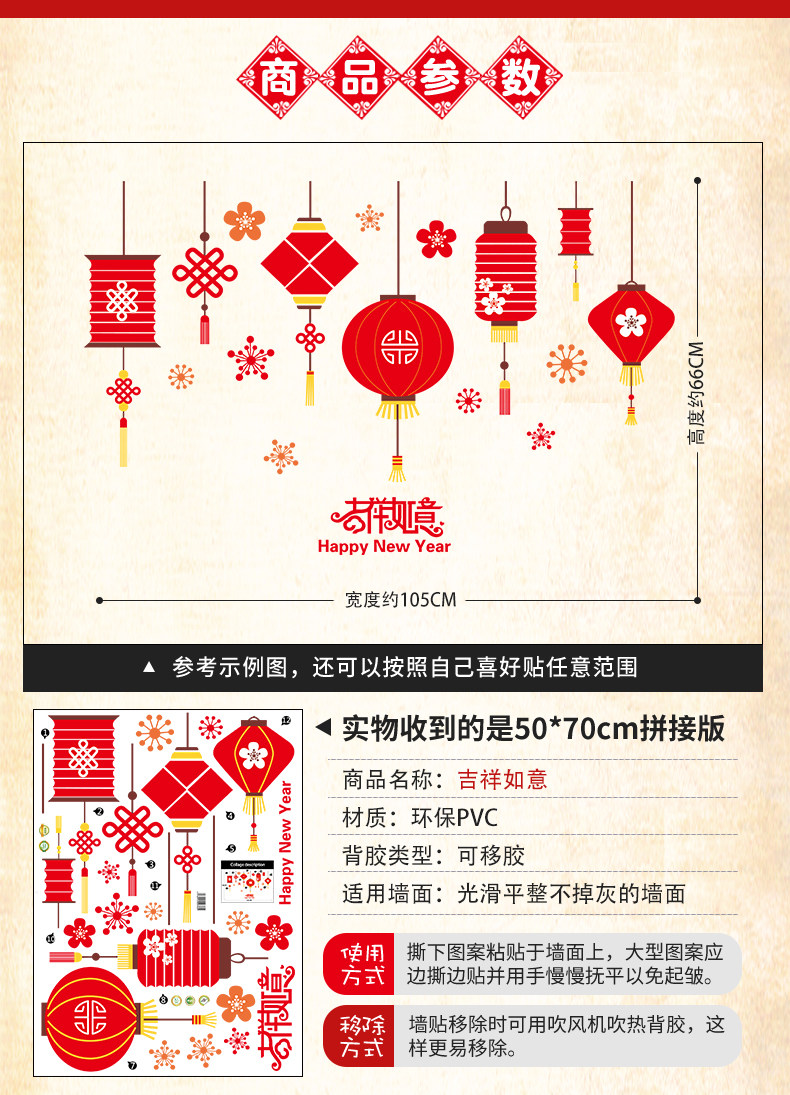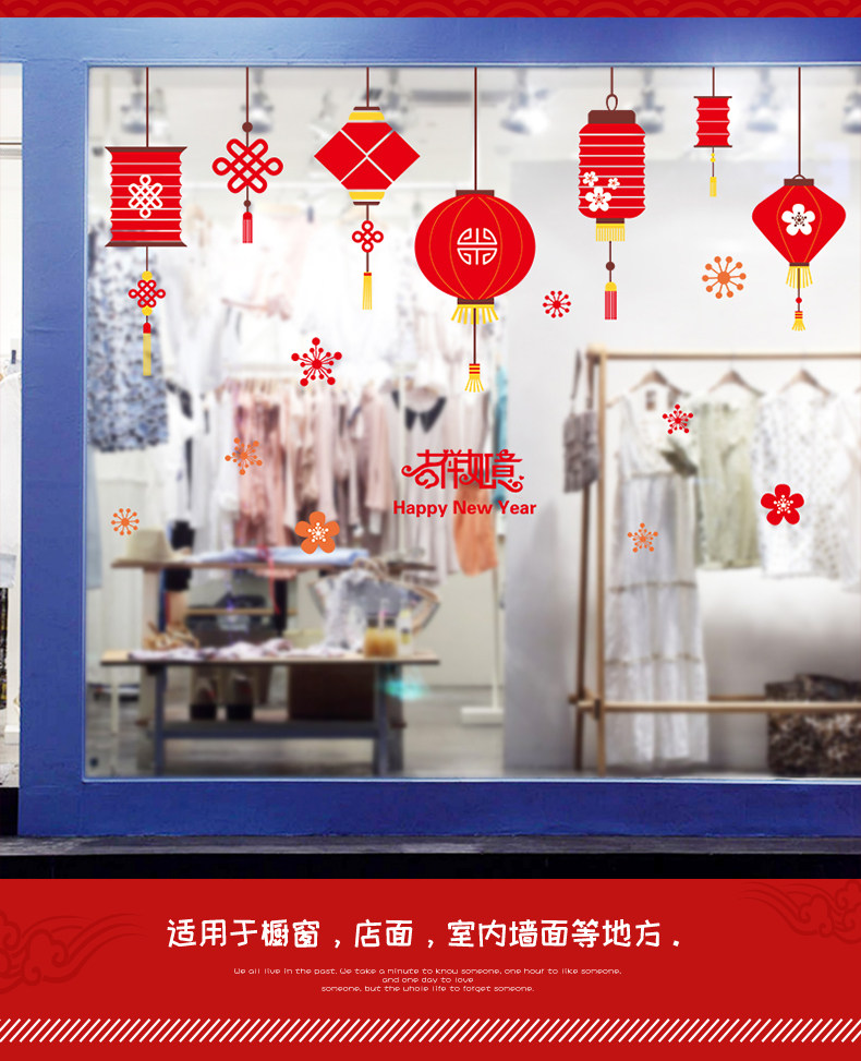 喜庆新年贴纸店铺玻璃窗贴门贴春节挂饰挂件灯笼装饰墙贴画