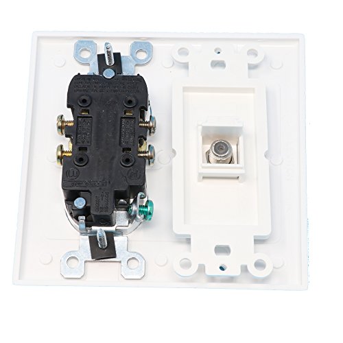 RiteAV (2 Gang Decorative) 15 Amp Round Power Outlet Coax Cable TV Wall Plate White