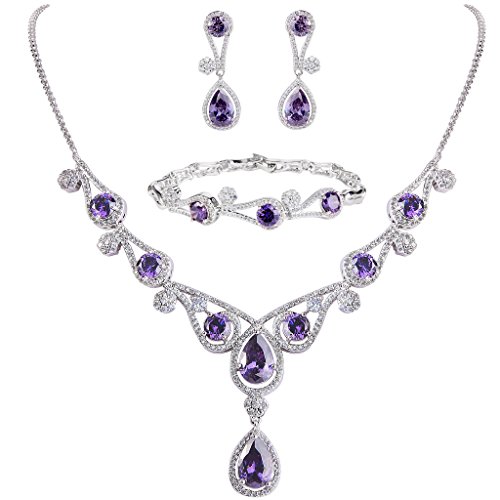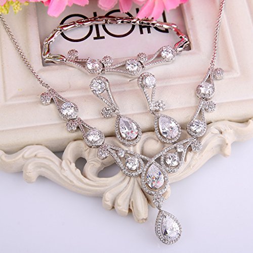 -. Title : EVER FAITH Women's CZ Lots Hollow-out Teardrop Necklace Earrings Bracelet Set Silver-Tone