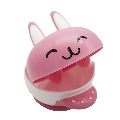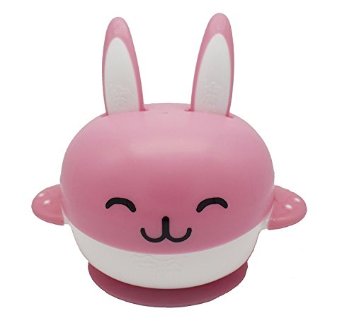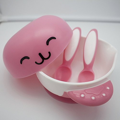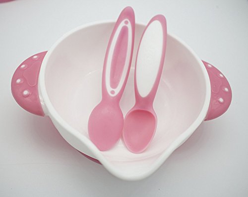 CiSiRUN Baby Feeding Bowl and 2 Spoons Set, Super Strong Suction Base Stay, Non-Skid Handles and Cute Rabbit Design (Pink)