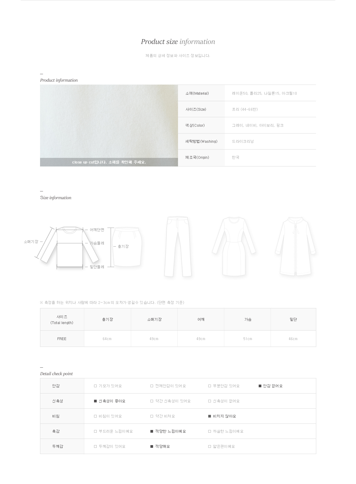 사이즈는 프리 사이즈로 (44-66반까지) 예쁘게 착용 가능하세요