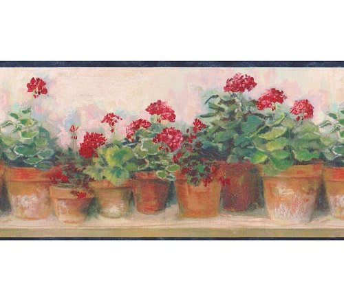 -. Title : Blue and Red Floral Geraniums Wallpaper Border 95081 PC