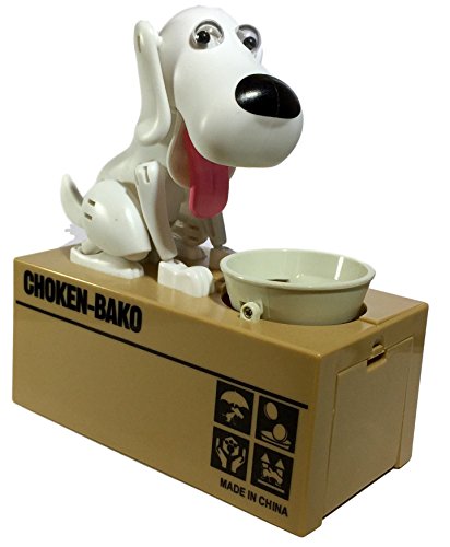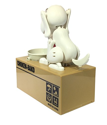 Happy Puppin Choken Bako Robotic Dog Bank Doggy Coin Bank & Money Box (White)