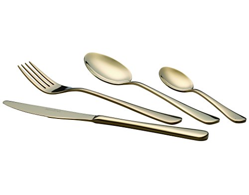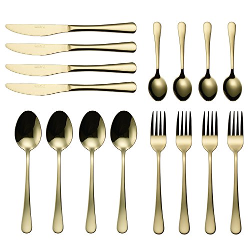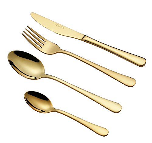 Exzact WF944 Premium 18/10 Stainless Steel 16 PCS Flatware / Cutlery Set - 4 x Forks, 4 x Dinner Knives, 4 x Dinner Spoons, 4 x Teaspoons – Service for 4 (Golden / Gold Effect)