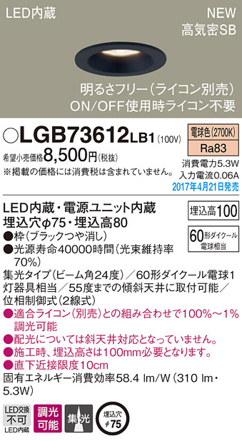 ●寸法(mm):埋込穴φ75・埋込高80