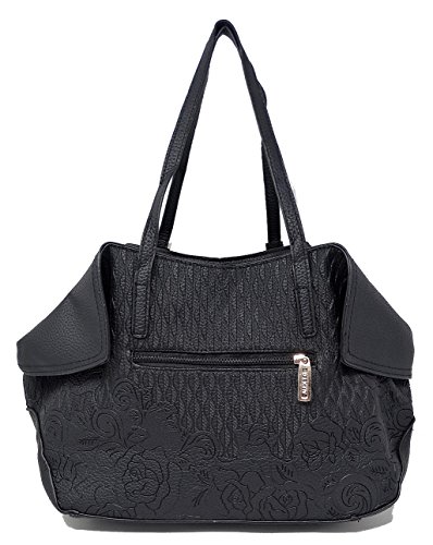 ALEX T.G. Women Satchel Handbag TULIP 3D ART Black Color