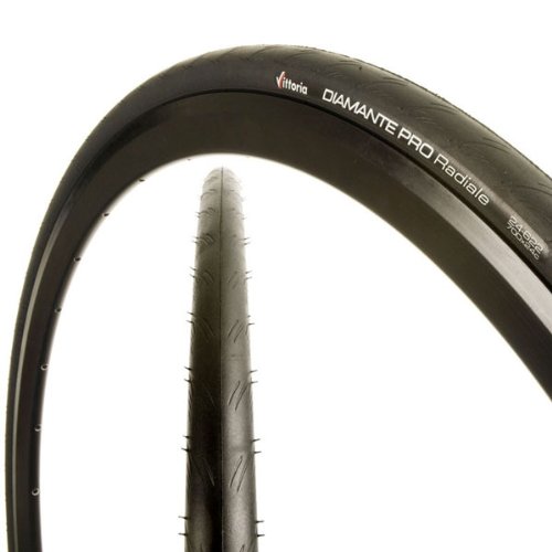 ReleaseDate : 2012-02-15 Studio : Vittoria Publisher : Vittoria Binding : Sports Product Description Vittoria has long remained dedicated to doing only what they do bestAAAmaking bicycle tires. From that pedigree comes the Diamante Pro Radiele tire, their quintessential race-day clincher. The Diamante Pro Radiele is a pro-caliber tire, in a user-friendly format. The Radiele is built with VittoriaAAAs radial construction, which sets the casingAAAs cord plies at 85 degrees to the direction of tire travel (from bead to bead), allowing the cords to deform freely as the tire flexes. This type of construction translates to a more flexible tire, and lower rolling resistance. With this added flexibility, youAAAll also notice improved ride quality and better cornering grip at higher speeds. The Diamante Pro Radiele is capable of an impressive maximum inflation of 145 psi. It houses VittoriaAAAs latest and lightest nylon PRB 2.0 puncture strip to resist glass, thorns, and all other forms of road detritus. The radial construction on the Diamante Pro Radiele also shaves a millimeter off the tire width, so your choices are between a 22mm or 24mm width. Available only in Black.