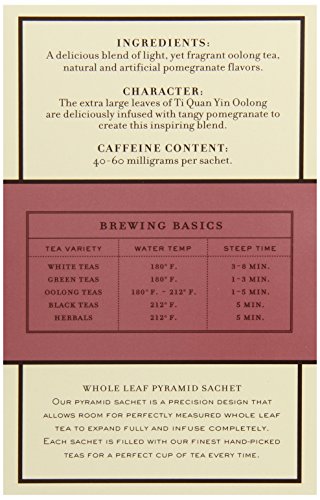 -. Feature : Premium flavored oolong tea / Infused with pomegranate flavor / Whole leaf tea sachets / Kosher / It can be enjoyed on its own or with milk and sugar