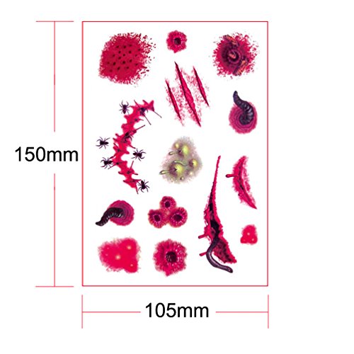 - Halloween Temporary Tattoo is very realistic. Great trick to astonish and scare your friends, men women halloween costume funny 3d scar decal face body art makeup