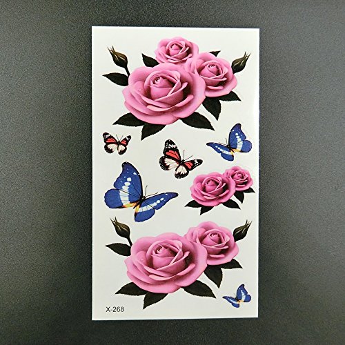 Oottati Small Cute Temporary Tattoo Pink Rose (2 Sheets)