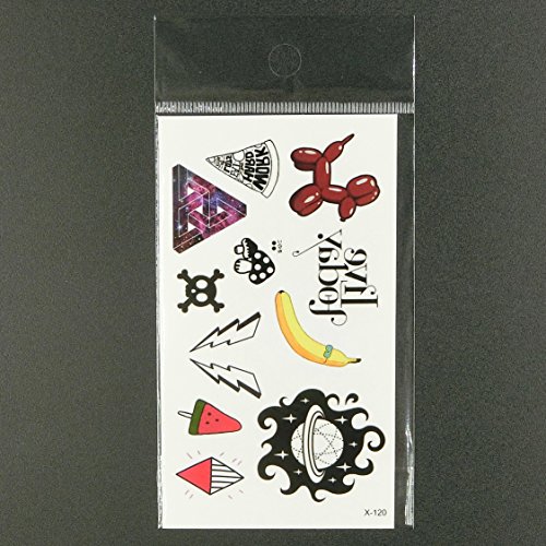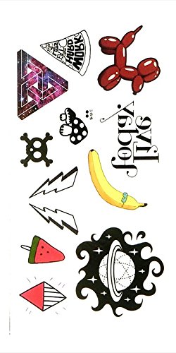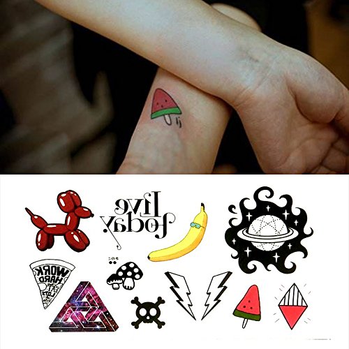 Oottati Small Cute Temporary Tattoo Banana Thunder Planet Watermelon Ice Cream (2 Sheets)
