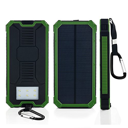Solar Cell Phone Charger, FKANT 15000mAh Solar Power Bank Portable Dual USB Outdoor External Battery Pack for iPhone, Samsung, HTC, Nexus Smartphone, Gopro Camera, GPS and Tablets, Green