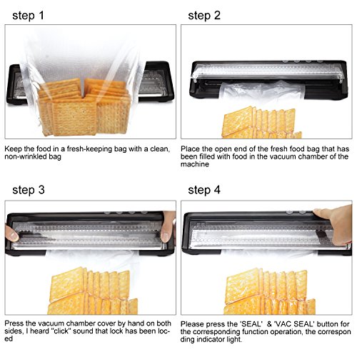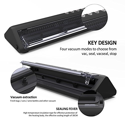 • 【SIMPLE OPERATION】 Only 4 buttons for modes to choose from vac, seal, vac seal, stop. Easy to operate, make your life become more convenient and save your time. You just spent 9s to seal and 10s - 20s to vacuum, it also can automatic stop after completion.