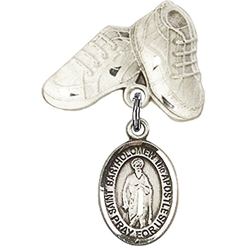 -. Title : Sterling Silver Baby Badge with St. Bartholomew the Apostle Charm and Baby Boots Pin 1 X 5/8 inches