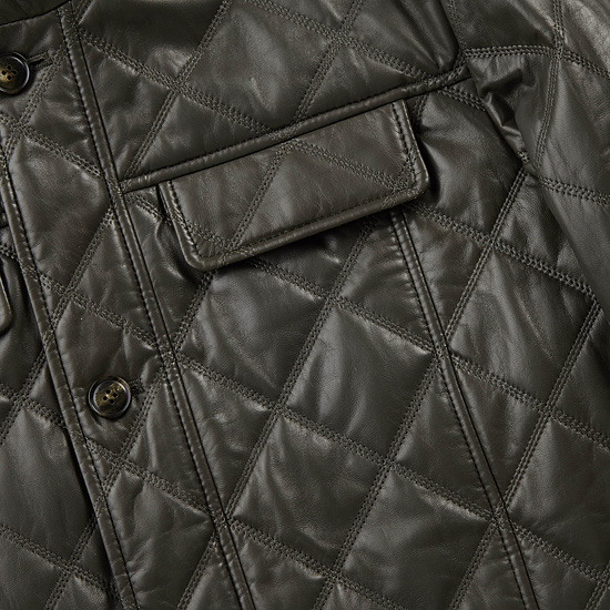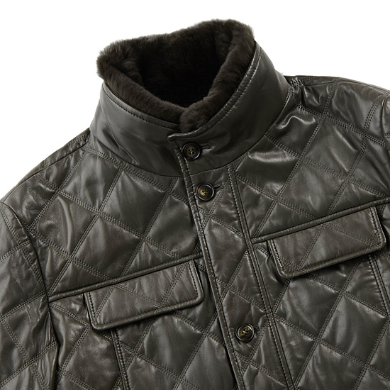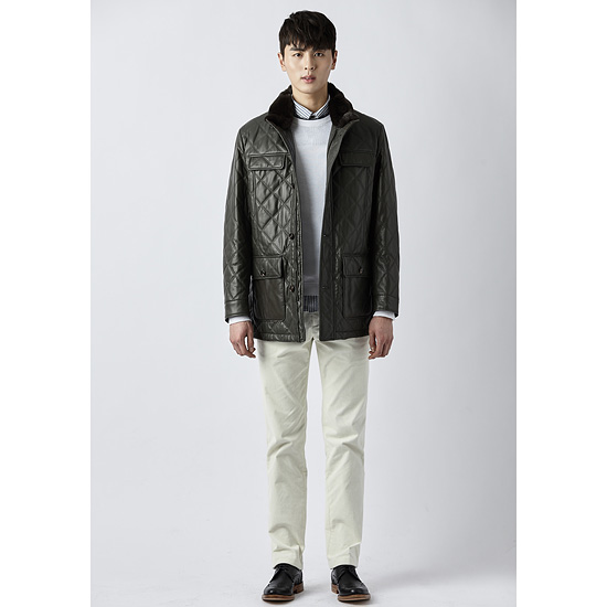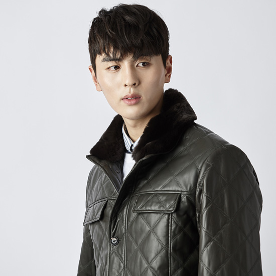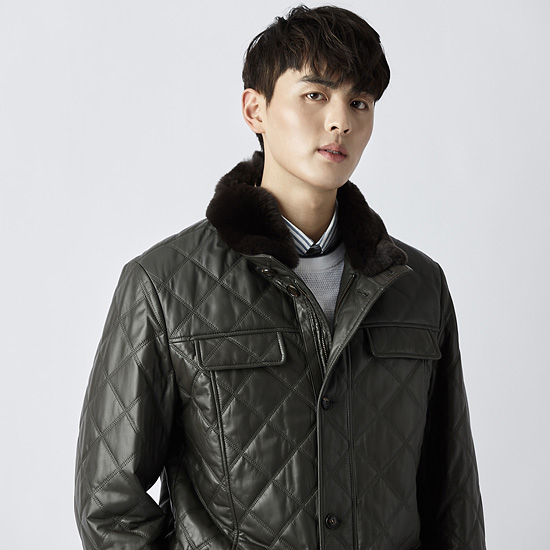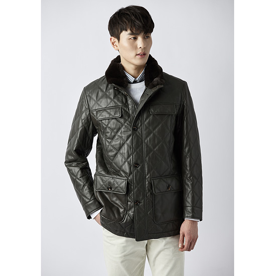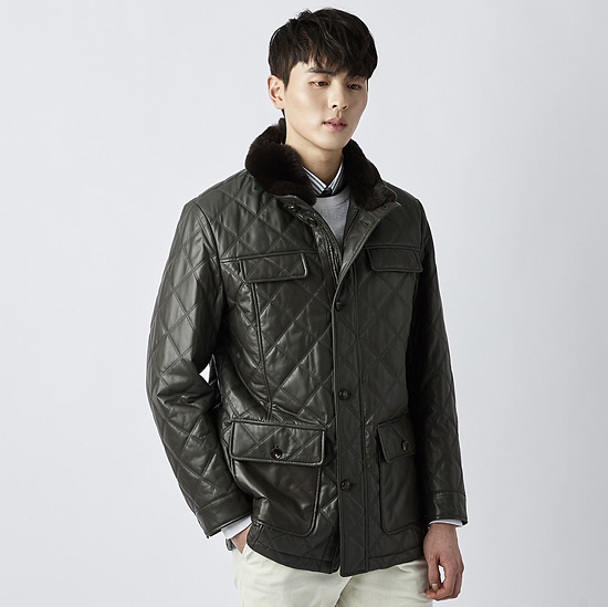 - 유연한 터치감의 천연 양가죽 소재를 사용하여 고급스러운 남성 점퍼.