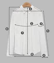 | 尺码 | ①肩宽 | ②胸围 | ③袖臂围 | ④袖口围 | ⑤袖长 | ⑥前衣长 | ⑦后中长 | ⑧下摆围 | ||