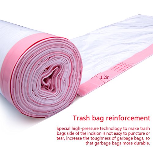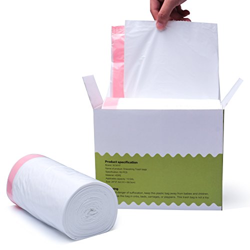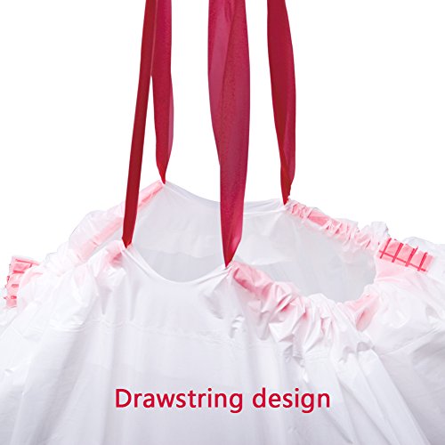 - The design of the drawstring bag: The drawstring ensures a tight grip on trash cans and makes for a simple removal with a quick cinch of the durable drawstring